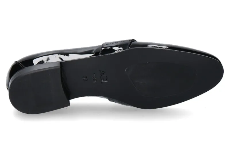 Der AGL Loafer aus schwarzem Lackleder ist ein zeitlos eleganter Damenschuh mit klassisch moderner Form. Die handgefertigte Kreation aus Italien besticht durch feine Ziernähte und einen glänzenden Lackriegel, der dem Design eine exklusive Note verleiht. Die Ledersohle mit Gummieinsatz sorgt für Komfort und Stabilität, während das Lackleder dem Schuh einen Hauch von Raffinesse und Glanz verleiht. Dieser Loafer ist vielseitig einsetzbar und perfekt für formelle sowie informelle Anlässe. Ob zu Hosenanzügen oder Kleidern, der AGL Loafer veredelt jeden Look mit zeitloser Eleganz. Die hochwertige Verarbeitung und die handgefertigte Qualität machen ihn zu einer Investition, die Ihnen lange Freude bereiten wird. Ein Schuh, der Stilbewusstsein und Klasse ausstrahlt.