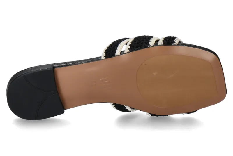 Die Bibi Lou Pantolette HOLLY in Schwarz vereinen modisches Design und Komfort. Das Obermaterial aus gehäkeltem Stoff in Schwarz-Weiß sorgt für einen einzigartigen, trendigen Look, der jedes Outfit aufwertet. Die Lederfütterung im Inneren garantiert ein angenehmes Tragegefühl und eine hohe Haltbarkeit. Diese Pantolette eignet sich perfekt für warme Tage und lässt sich vielseitig zu verschiedenen Freizeit- oder Sommeroutfits kombinieren. Mit ihrem schicken, handwerklichen Design ist die HOLLY ein eleganter und zugleich bequemer Schuh für modebewusste Frauen.