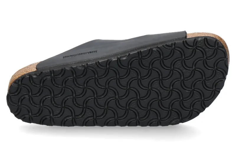 Die Pantolette aus Nappaleder in schwarz von Birkenstock ist mit zwei Riemen ausgestattet die sich individuell verstellen lassen. Das Fußbett ist aus einem Naturkork verarbeitet. Die Innensohle besteht aus Veloursleder. Birkenstock Schuhe stehen für ein sehr gutes Tragekomfort und einer sehr guten Lederverarbeitung. Das Markenlogo der Schuhe wurde an der Seite eingestandst. Gefertigt wurde die Pantolette ARIZONA sehr gut in Deutschland.