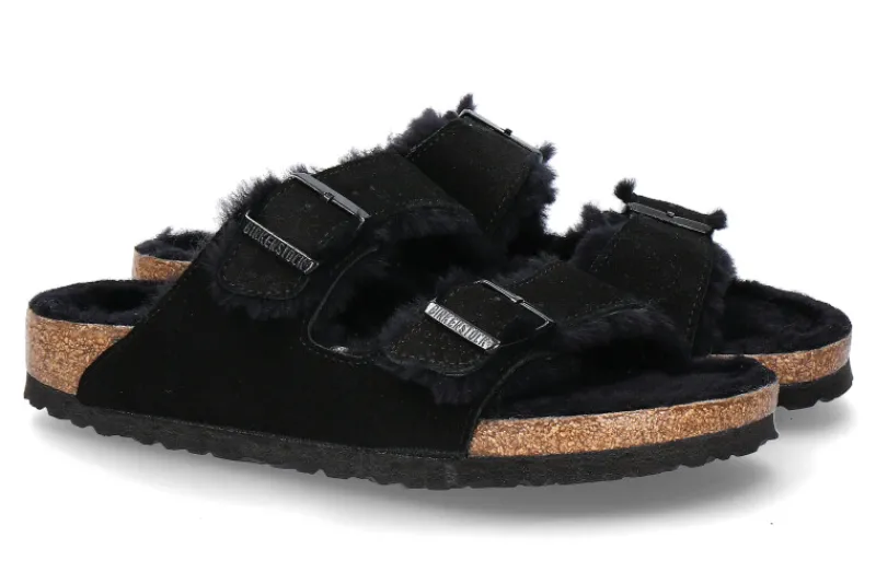 Damen Birkenstock Pantolette gefüttert ARIZONA SCHMAL FUR BLACK