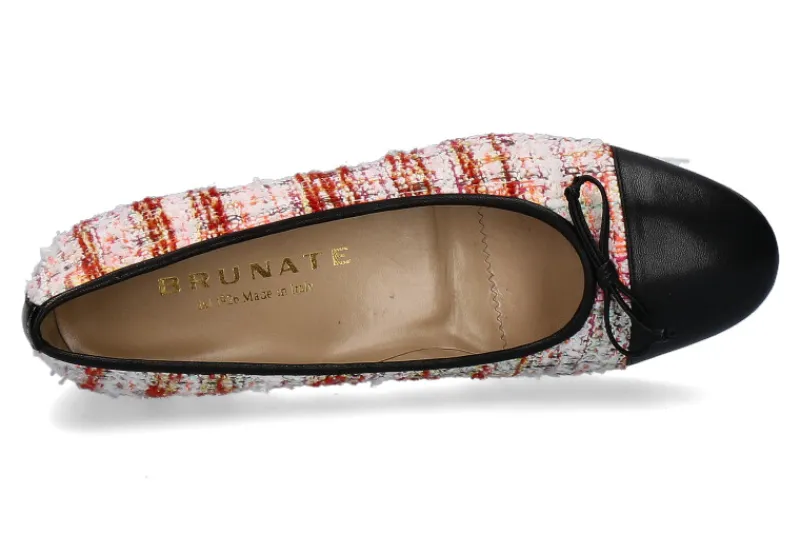 Ein exquisiter Style von Brunate ist der Ballerina aus Tweet mit schwarzer Spitze und Schleife. Das Modell ist mit einem Lederinnenfutter sowie einer Lederdecksohle ausgestattet. Abgerundet wird der Schuh durch eine hochwertige Ledersohle. Der Brunate Ballerina wurde mit viel Liebe zum Detail in Italien gefertigt.