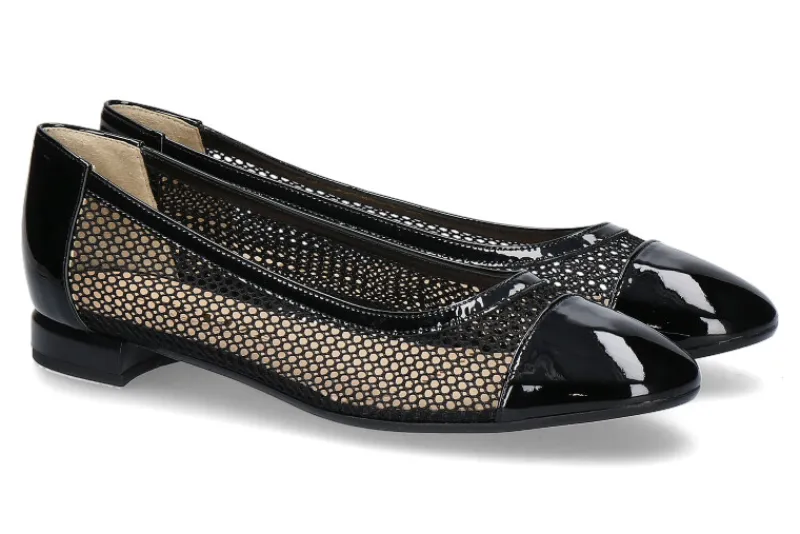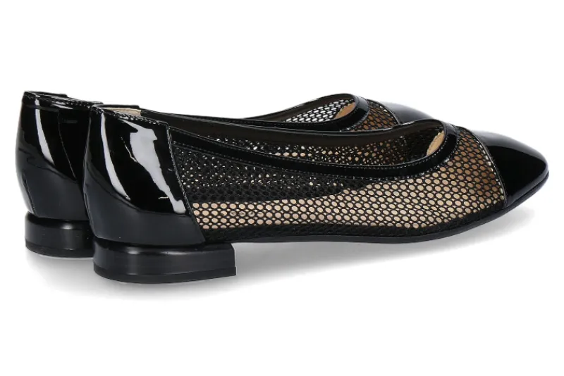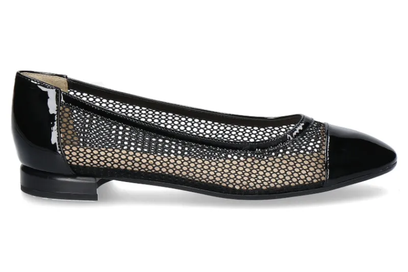 Der edle Brunate Ballerina ist ein toller Sommer-Begleiter! Das Obermaterial aus schwarzem Lackleder und Mesheinsatz ist ein echter Eyecatcher und auch zu eleganten Outfits gut kombinierbar. Ausgestattet mit einer kompletten Lederfütterung verfügt das Modell über einen sehr guten Trage- und Laufkomfort. Gefertigt wurde dieser exklusive Damenschuh von Brunate in Italien.