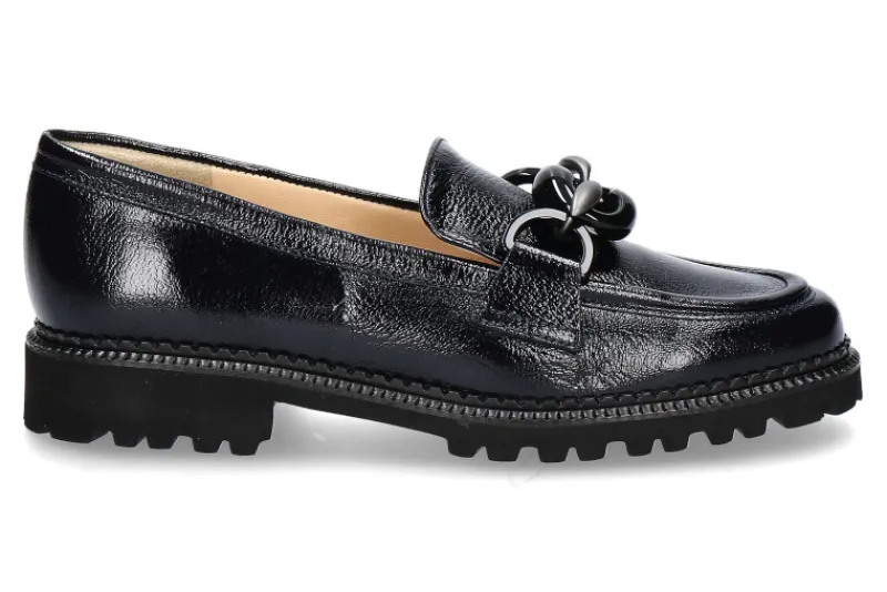 Der Brunate Loafer aus tief dunkelblauem Lackleder vereint Eleganz und Komfort in einem exquisiten Design. Die glänzende, dunkle Oberfläche des Lackleders strahlt zeitlose Raffinesse aus und wird durch ein exklusives Accessoire in Schwarz und Dunkelgrau stilvoll akzentuiert. Die griffige Gummisohle sorgt nicht nur für sicheren Halt, sondern macht den Loafer auch außergewöhnlich leicht und flexibel – ideal für den täglichen Einsatz. Das hochwertige Lederinnensohle und das weiche Lederinnenfutter in Hellbeige bieten ein luxuriöses Tragegefühl und umhüllen den Fuß mit angenehmer Wärme und Komfort. Dieser Loafer ist die perfekte Wahl für anspruchsvolle Träger, die stilvolles Design, hochwertige Materialien und höchsten Tragekomfort in einem Schuh vereint suchen.