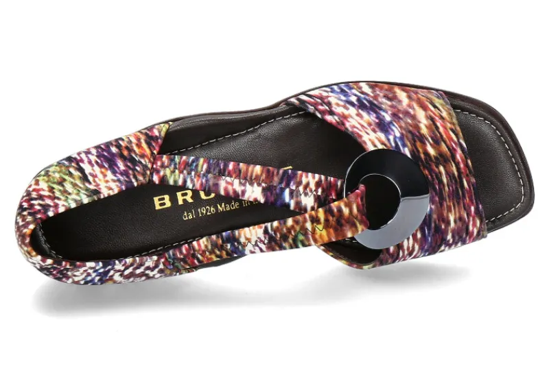 Ein Traum für die Füsse und für den Sommer einfach ein Must- Have! Die Brunate Sandale aus hochwertigem Seta- Material ist ein Blickfang und der perfekte Begleiter bei hochsommerlichen Temperaturen. Sehr guten Halt und einen unkomplizierten Einschupf verspricht das elastische Band, welches durch einen silbernen Ring den Fuss individuell umschließt. Die Innensohle ist weich gepolstert und sehr weich und bequem. Ein 25 mm Absatz unterstützt die klassische Form der Sandale. Abgerundet wird der Brunate Schuh durch einen polierte Ledersohle. Handgefertigt wurde das Modell in Italien.