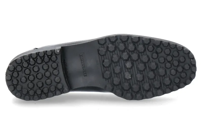 Der Brunate Slipper mit Mokassinnaht aus Softlackleder in Schwarz überzeugt durch sehr gute Passform und zeitlosem Design. Das Innenmaterial ist mit gewachsenem Lammfell gefüttert und sorgt für wohlig warme Füsse an kalten Tagen. Die Laufsohle besteht aus Gummi und ist rutschfest sowie flexibel. Bestens verarbeitet wurde der handgefertigte Slipper von Brunate zu 100% in Italien.