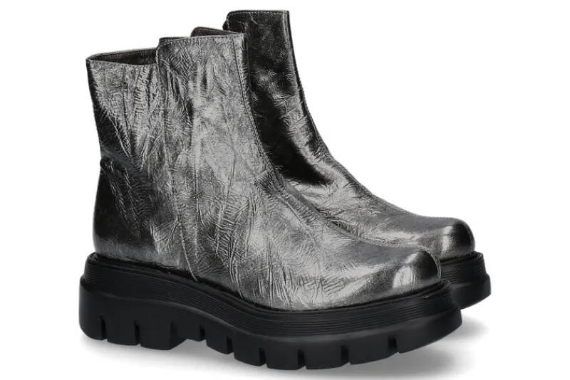 Der „EDO“ Damenschuh von Brunate begeistert durch das hochwertig verarbeitete Lackleder in silber. Öffnen lässt sich dieser bequem durch einen eingefassten Reißverschluss. Das Innenleben der Stiefelette besteht aus feinem Nappaleder. Für den exklusiven Look sorgt zudem die derbe Gummilaufsohle mit starkem Profil. Hergestellt werden Schuhe von Brunate mit viel Liebe zum Detail in Italien.