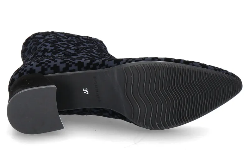 Die klassische Brunate Stiefelette aus dunkelblauem Veloursleder vereint zeitlose Eleganz mit hochwertiger Verarbeitung. Das weiche Veloursleder verleiht der Stiefelette eine edle Optik, während die runde Form für eine feminine Silhouette sorgt. Der stabile 30 mm Blockabsatz bietet eine angenehme Höhe, die sowohl Komfort als auch Stil garantiert. Die griffige Profilsohle sorgt für sicheren Halt auf verschiedenen Untergründen und macht die Stiefelette alltagstauglich. Innen verwöhnt das Lederfutter gemeinsam mit der Lederinnensohle den Fuß mit einem luxuriösen Tragegefühl. Ein seitlicher Reißverschluss erleichtert das An- und Ausziehen und fügt sich dezent ins Design ein. Diese Stiefelette ist die perfekte Wahl für stilbewusste Frauen, die auf Qualität und Komfort setzen.