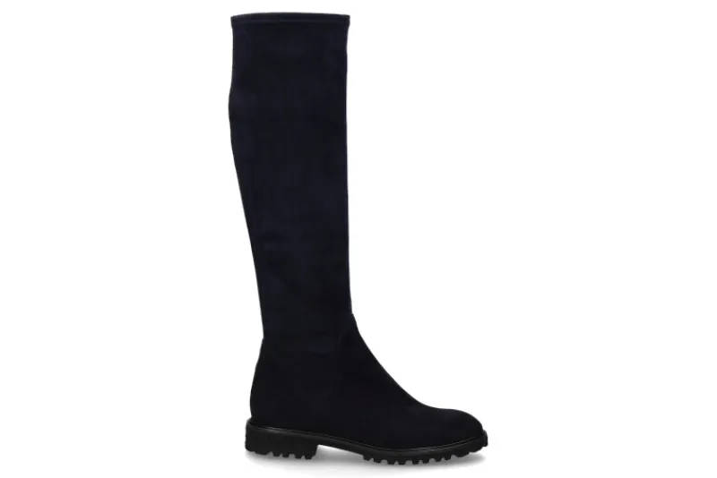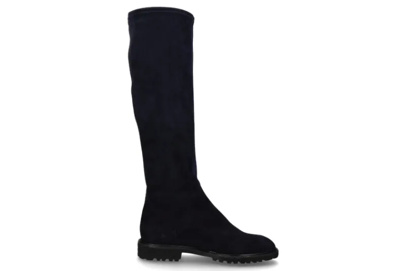 Der modische Stiefel mit Stretchschaft überzeugt mit einer schlichten, aber dennoch beeindruckenden Optik. Der Schuh ist aus dunkelblauem Veloursleder gefertigt. Die Laufsohle, mit extraleichtem Profil, sorgt für einen angenehmen Tragekomfort. Die Innensohle ist aus Leder. Hergestellt werden Brunate Schuhe in Italien.