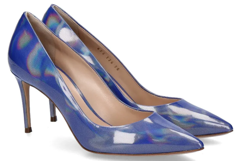 Die Casadei Pumps mit einem 80 mm hohen Absatz aus blauem Lackleder sind ein elegantes und stilvolles Schuhwerk für jede Frau. Der Schuh hat eine spitze Form und eine Ledersohle für zusätzlichen Komfort und Halt. Das blaue Lackleder hat einen wunderschönen coloralen Schimmer, der dem Schuh einen glamourösen und modischen Look verleiht. Das hochwertige Material sorgt für Langlebigkeit und Stabilität und die 80 mm Absatzhöhe bietet eine perfekte Balance zwischen Komfort und Höhe. Diese Pumps sind perfekt für besondere Anlässe, formelle Veranstaltungen oder sogar für den täglichen Gebrauch, um Ihrem Outfit einen Hauch von Eleganz zu verleihen. Insgesamt sind diese Casadei Pumps eine großartige Wahl für jede Frau, die ein stilvolles und komfortables Paar Schuhe sucht.