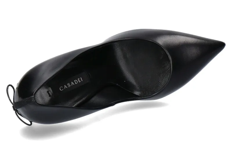 Der luxuriöse High Heel von Casadei begeistert aus feinstem Nappaleder. Die kleine Strasssteinschleife auf der Rückseite mit dem ikonischen „Blade“-Absatz macht dieses Modell zur perfekten Wahl für jede Feierlichkeit. Hergestellt werden die edlen Schuhe von Casadei zu 100 % in Italien.