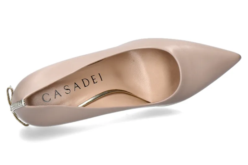Hochwertiges Leder und ein feminin aufregendes Design machen den Pumps BLADE von Casadei zu einem Blickfang. In der Farbe TAUPE ist das Modell sehr gut kombinierbar und bezaubert durch den dezent goldenen 60 mm Absatz sowie der verspielten Schleife. Innen ist der Pumps mit Leder ausgefüttert. Eine polierte Ledersohle vollendet den hochwertigen BLADE. Gefertigt werden Schuhe von Casadei zu 100 % in Italien.
