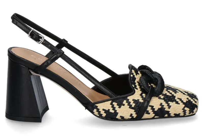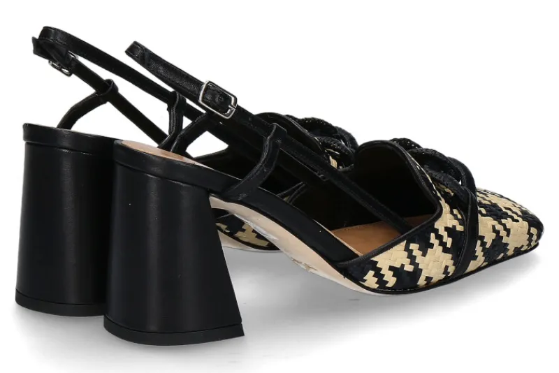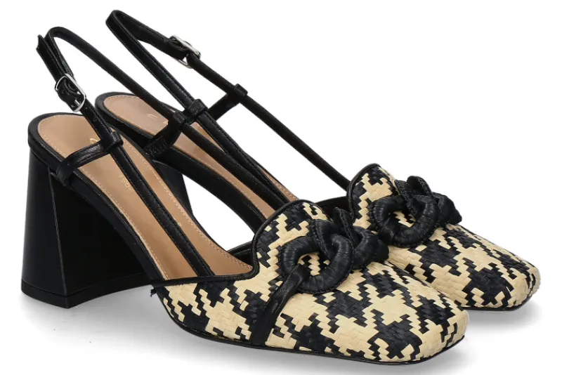 Die „Chantal 1962“ Slingpumps kombinieren raffiniertes Raffia und hochwertiges Leder in elegantem Beige und tiefem Schwarz. Mit ihrer markanten karreeförmigen Schuhspitze und dem robusten, dicken Blockabsatz setzen sie ein modisches Statement. Die Lederfütterung und Ledersohle gewährleisten nicht nur Komfort, sondern auch Langlebigkeit und Qualität. Diese Slingpumps sind perfekt für Frauen, die Wert auf Stil und Bequemlichkeit legen, ohne Kompromisse bei der Qualität einzugehen. Ob im Büro, bei besonderen Anlässen oder in der Freizeit, die „Chantal 1962“ Slingpumps verleihen jedem Outfit einen Hauch von Eleganz und Chic.