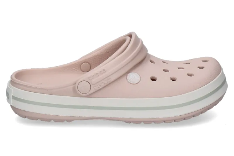 Die Crocs Pantolette CROCBAND CLOG in der Farbe Quarz kombiniert sportlichen Stil mit funktionalem Design. Ein auffallender Streifen auf der Mittelsohle verleiht dem Schuh einen dynamischen Look. Die Belüftungslöcher sorgen für hervorragende Atmungsaktivität und halten die Füße kühl. Dank ihres wasserfreundlichen und schwimmfähigen Materials sind die Clogs ideal für den Einsatz am Pool oder Strand. Das ergonomisch geformte Croslite™-Material bietet leichte Polsterung und Komfort, was den ganzen Tag über ein angenehmes Tragegefühl garantiert. Ein kippbarer Fersenriemen sorgt für einen sicheren Sitz, sodass die Crocs perfekt für Freizeitaktivitäten und den täglichen Gebrauch geeignet sind.