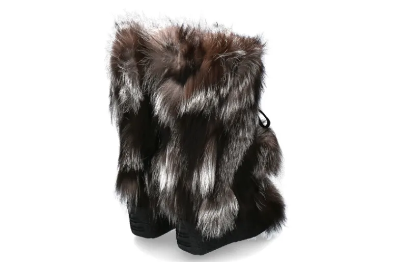 Damen Diavolezza Fellstiefel SILVER FOX POM POM Fuchsfell