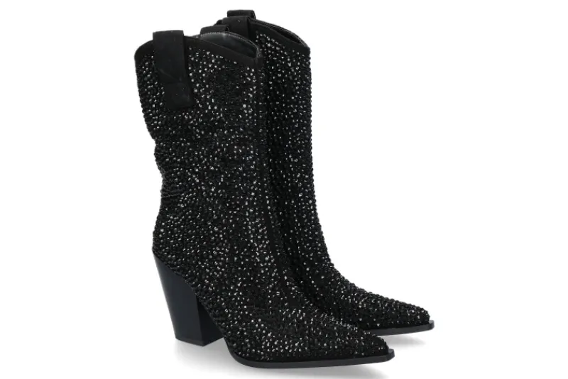 Wenn Sie nach einem aufregenden Schuhwerk suchen, das Ihren Stil aufpeppt und Ihre Persönlichkeit zum Ausdruck bringt, dann sind diese schwarzen Cowboy-Stiefel mit Glitzersteinen die perfekte Wahl. Sie sind ein wahrer Hingucker und werden Sie sicherlich zum Star jeder Veranstaltung machen.