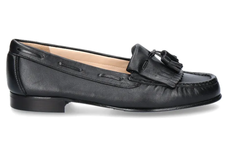 Gardenia Mokassin in schwarz aus weichem Nappaleder mit Quaste. Innen ist der Schuh mit sehr weichem Leder ausgestattet und sehr komfortabel. Der Slipper ist handgefertigt in Italien und hochwertig verarbeitet. Die Ledersohle hat einen rutschfesten Gummiüberzug.