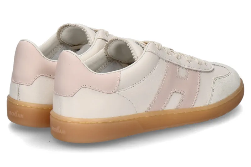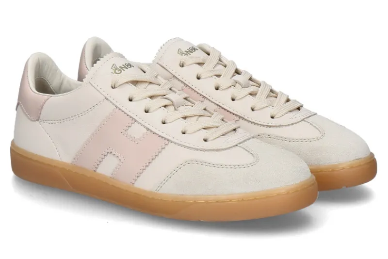 Der Hogan Damen-Sneaker COOL ALLACCIATO in Beige/Rosa kombiniert edles Glattleder mit stilvollen Velourslederdetails und sorgt für eine luxuriöse Optik. Das Innenfutter aus Leder und Frottee bietet höchsten Tragekomfort und ein angenehmes Fußklima. Die wechselbare Textilsohle ermöglicht individuelle Anpassung und zusätzlichen Komfort. Mit einer 25 mm hohen Gummilaufsohle bietet der Sneaker eine dezente Erhöhung und optimale Dämpfung. Sein sanfter Farbmix aus Beige und Rosa verleiht ihm eine feminine Note und macht ihn zum perfekten Begleiter für moderne, stilbewusste Frauen. Vielseitig kombinierbar, passt er sowohl zu lässigen als auch eleganteren Looks. Ein zeitloser Schuh mit sportlicher Eleganz.