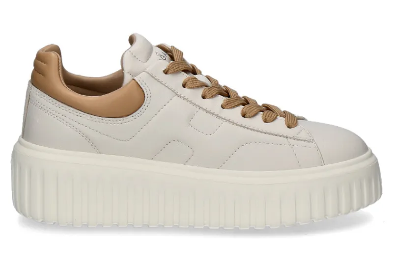 Der Hogan Damen-Sneaker H-STRIPES ALLACCIATO in Beige ist die perfekte Mischung aus Eleganz und sportlichem Charme. Das Modell besteht aus hochwertigem Glattleder und besticht durch die braunen Schnürsenkel, die zusammen mit der angesetzten Fersenkappe einen modernen Look verleihen. Die wechselbare Textilsohle sorgt für zusätzlichen Komfort, während das Meshfutter atmungsaktiv ist und für ein angenehmes Tragegefühl sorgt. Mit einer 50 mm hohen Plateausohle aus Gummi bietet der Sneaker nicht nur eine gute Dämpfung, sondern auch einen trendigen, erhöhten Stand. Das schlichte, aber dennoch raffinierte Design macht den Hogan H-STRIPES ALLACCIATO zu einem vielseitigen Begleiter für stilbewusste Frauen.