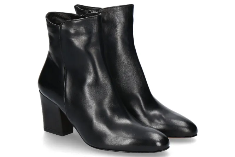 Die Kroll KRL Stiefelette aus schwarzem Nappaleder kombiniert zeitlose Eleganz mit modernem Komfort. Der 60 mm hohe Blockabsatz, mit Leder überzogen, bietet nicht nur Stabilität, sondern auch einen stilvollen Look. Der seitliche Reißverschluss erleichtert das An- und Ausziehen und fügt ein praktisches Element hinzu. Mit ihrer mandelförmigen Spitze verleiht diese Stiefelette jedem Outfit eine subtile Raffinesse. Das hochwertige Lederinnenfutter sorgt für optimalen Tragekomfort und Atmungsaktivität. Diese Stiefelette von Kroll ist ein Must-Have für die modebewusste Frau, die auf Qualität und Stil Wert legt. Perfekt kombinierbar mit verschiedenen Outfits, ergänzt sie sowohl elegante als auch casual Looks und setzt modische Akzente.