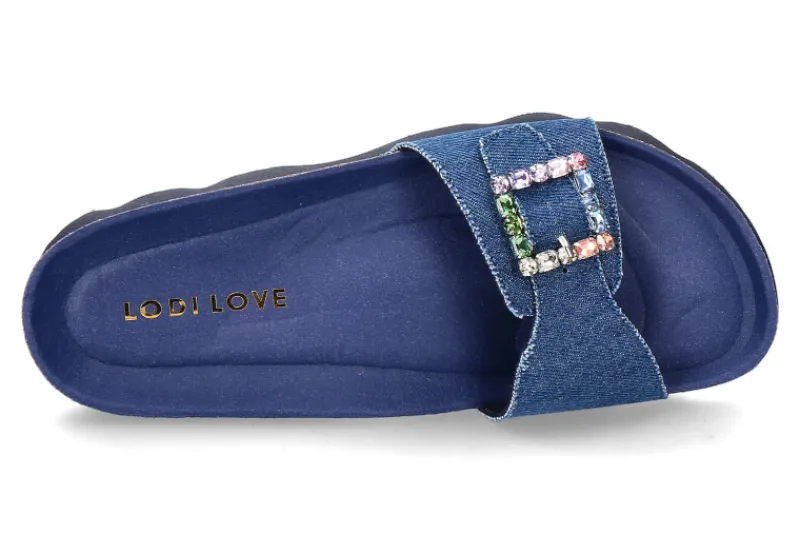 Die Lod Fussbettpantolette präsentiert sich in einem lässigen Design aus Jeansstoff mit einer stilvollen, schlichten Schließe, die mit Schmucksteinen besetzt ist. Die Verwendung von Jeansstoff verleiht der Pantolette einen entspannten und dennoch schicken Look. Die seitliche Schließe fügt eine dezente Eleganz hinzu und betont die Details mit Schmucksteinen. Die gepolsterte Lederinnensohle sorgt für angenehmen Tragekomfort und unterstützt die Fußgesundheit. Die rutschfeste Gummisohle gewährleistet sicheren Halt und Stabilität beim Gehen. Insgesamt kombiniert diese Pantolette von Lod modischen Stil mit Komfort und Funktionalität, was sie zu einer idealen Wahl für den Sommer macht.