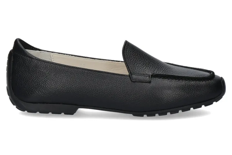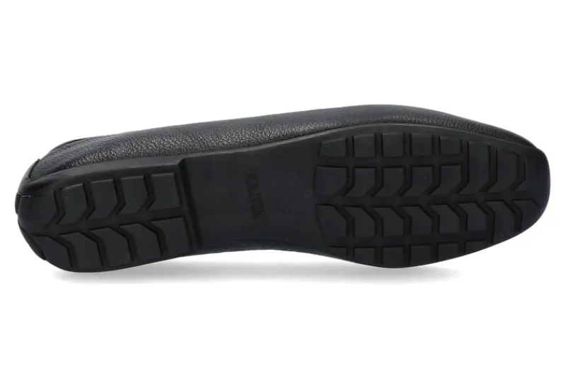 Klassisch, sportiver Mania Slipper aus weichem, genarbtem Nappaleder in schwarz, Lederinnenfutter, Gummisohle PROCAR, hochgezogen an der Ferse mit „MANIA“ Eindruck, Handmade in Italy, Lederinnensohle.