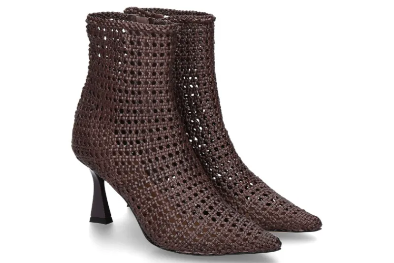 Die Martina T Stiefelette INTRECCIO in der Farbe TDM/Dunkelbraun überzeugt mit handwerklicher Eleganz und hochwertigen Materialien. Das geflochtene Glattleder verleiht dem Schuh eine besondere Textur und edle Optik. Die spitz zulaufende Schuhkappe unterstreicht den femininen Charakter, während der Reißverschluss an der Innenseite ein bequemes An- und Ausziehen ermöglicht. Innen ist die Stiefelette vollständig mit Leder gefüttert, was für ein angenehmes Fußklima sorgt. Der stabile, 75 mm hohe Absatz streckt optisch das Bein und bietet zugleich sicheren Stand. Abgerundet wird das Design durch eine edle Lederlaufsohle, die die Hochwertigkeit des Modells unterstreicht. Diese Stiefelette ist der perfekte Begleiter für stilbewusste Frauen – elegant, zeitlos und vielseitig kombinierbar.