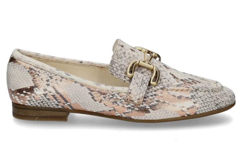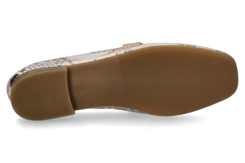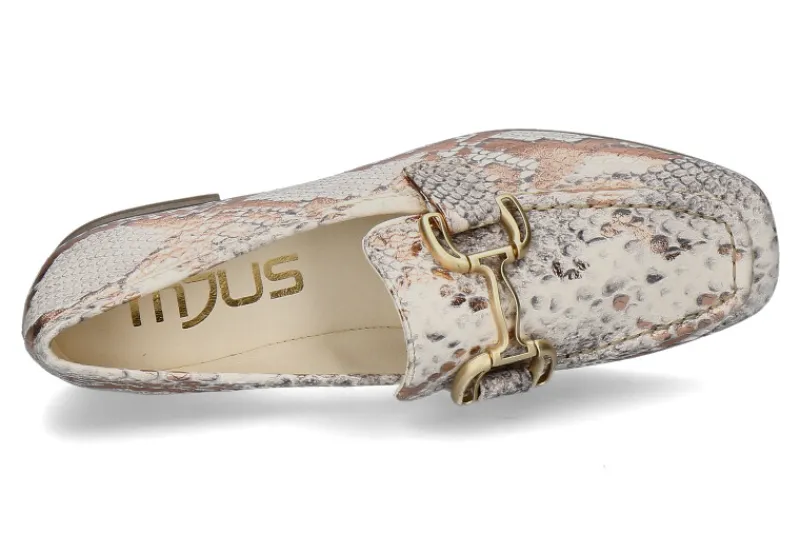 Der Mjus Loafer LEATHER in Rame/Hellgrau kombiniert Eleganz mit modischem Statement. Gefertigt aus hochwertigem Leder in Python-Echsenoptik, verleiht er jedem Outfit eine raffinierte Note. Die edle goldene Schnalle über der Vorderkappe setzt einen stilvollen Akzent und macht den Schuh zu einem besonderen Hingucker. Die Lederfütterung sorgt für ein angenehmes Tragegefühl, während die flexible Gummisohle Komfort und guten Halt bietet. Dank der neutralen, aber dennoch auffälligen Farbgebung lässt sich der Loafer vielseitig kombinieren – perfekt für elegante Casual-Looks oder stilvolle Business-Outfits. Ein Must-have für modebewusste Frauen mit Sinn für Qualität und Design!