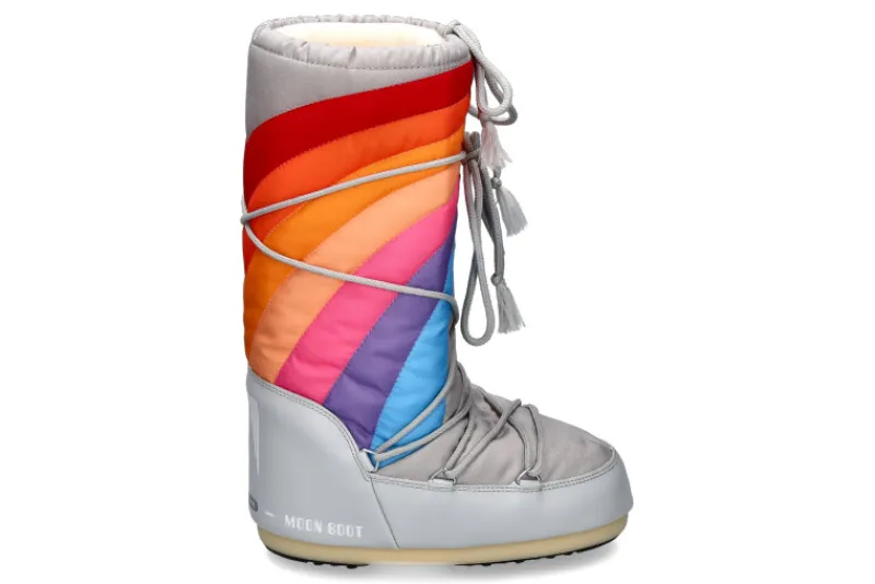 Die ICON Boots von MOON BOOT überzeugen mit einem tollen Design das gute Laune macht. Die Boots im Rainbow-Design aus Nylon und Leder sind garantiert für warme Füße. Mit einer profilierten Gummisohle verschafft der Schuh einen perfekten Halt. Mit dem ICON RAINBOW sind Sie für den Winter bestens gerüstet.