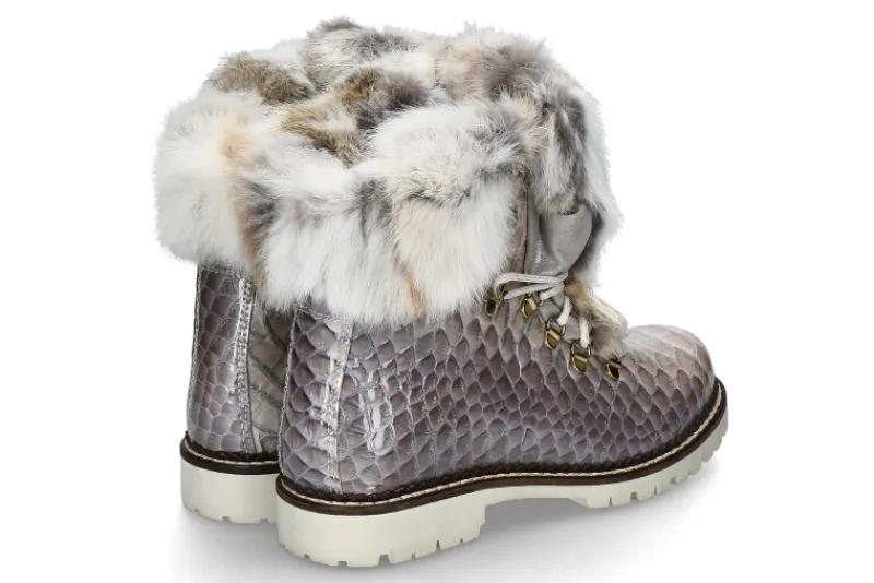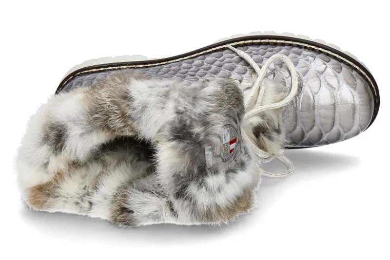 Damen New Italia Shoes Stiefelette KANNINCHENFELL GRAU GLITTER (36)