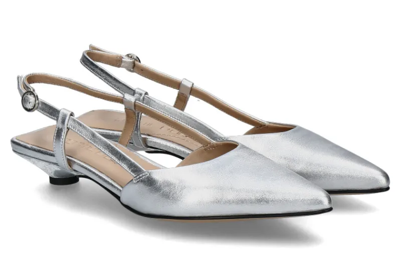 Für höchsten Tragekomfort sorgt die weiche Lederfütterung, die ein angenehmes Tragegefühl bietet. Der schmale Slingback-Riemen mit verstellbarer Dornschließe ermöglicht eine perfekte Passform und sicheren Halt. Die Ledersohle mit Gummianteil sorgt für Flexibilität und Rutschfestigkeit.