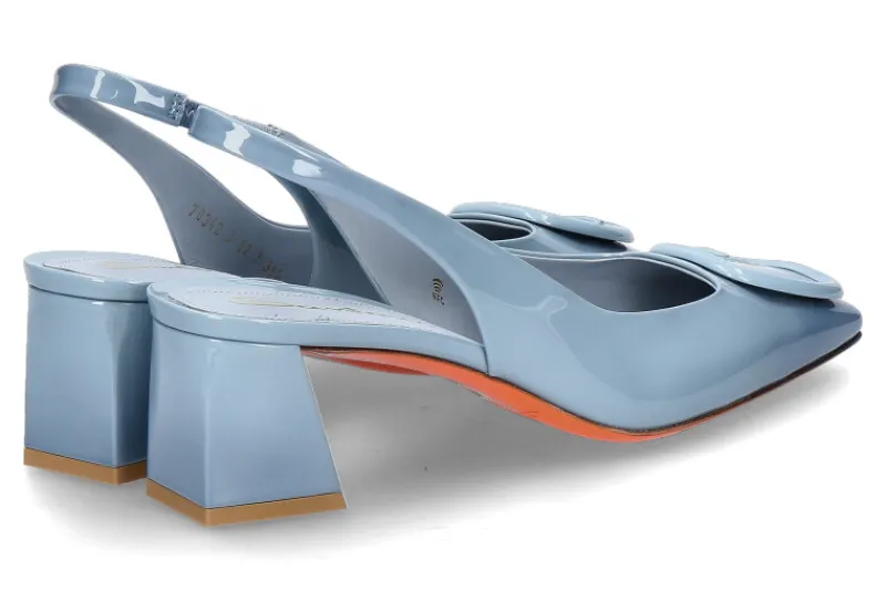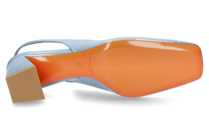 Die Santoni Slingpumps präsentieren sich als elegante Meisterwerke aus Lackleder in einem faszinierenden degradé Verlauf von Hellblau zu Blau. Der 50 mm Blockabsatz verleiht dem Schuh eine ausgewogene Höhe, während die karee Form für zeitgemäße Raffinesse sorgt. Die Lederlaufsohle in auffälligem Orange setzt einen kontrastierenden Farbakzent und verleiht den Pumps eine moderne Note. Die Lederinnensohle gewährleistet höchsten Tragekomfort. Dieses Design kombiniert handwerkliche Präzision mit einem kühnen Farbspiel und einer zeitgemäßen Silhouette. Die Santoni Slingpumps sind nicht nur ein modisches Statement, sondern auch eine stilvolle Wahl für Damen, die Eleganz und Individualität schätzen.