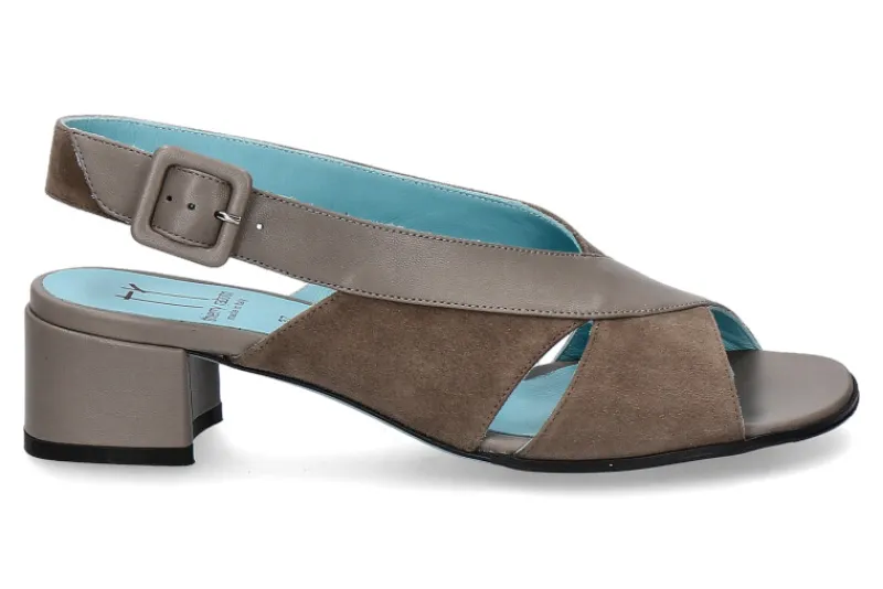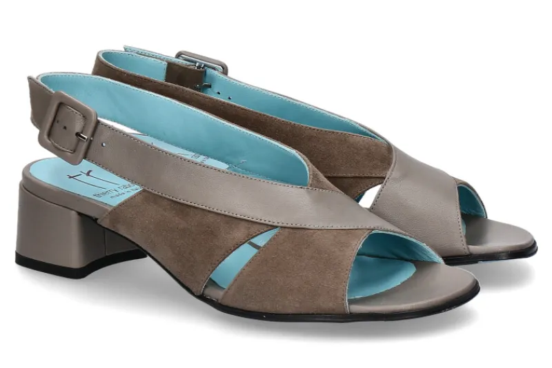 Die Sandale von Thierry Rabotin ist ein modisches Highlight. Der Mix aus Nubuk- und Glattleder macht einen einzigartigen Look. Der Fersenriemen ist mit einer Dornschließe ausgestattet. Der Blockabsatz hat eine Höhe von 50mm. Der Schuh ist aus feinem Leder in Italien gefertigt worden.