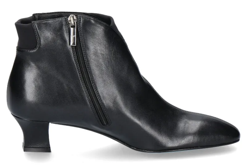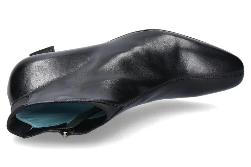 Die Thierry Rabotin Stiefelette mit angenehmen 40 mm Absatz ist aus schwarzem, Satin- glänzendem Leder gefertigt und überzeugt durch den hohen Tragekomfort und dem sehr bequemen Leisten. Am Einschlupf befindet sich ein Stretcheinsatz, der das Bein komfortabel umschließt. Seitlich befindet sich ein Reißverschluss. Die Sohle ist aus Leder und verfügt über einen Gummieinsatz. Thierry Rabotin Schuhe werden in Italien noch von Hand gefertigt und garantieren eine hervorragende Verarbeitung.