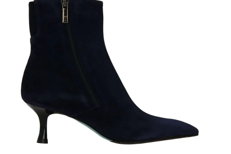Die feminine Damenstiefelette von Thierry Rabotin aus dunkelblauem Veloursleder verfügt über eine spitze Schuhform. Der seitlich angebrachte Reißverschluss ermöglicht einen leichten Einstieg. Ausgestattet ist das Modell TENNESSEE mit einer Lederfütterung und einer Leder/Gummi Laufsohle. Der Queenie Absatz verfügt über eine 55 mm angenehme Tragehöhe. Hergestellt werden Thierry Rabotin Schuhe sehr gut in Italien.