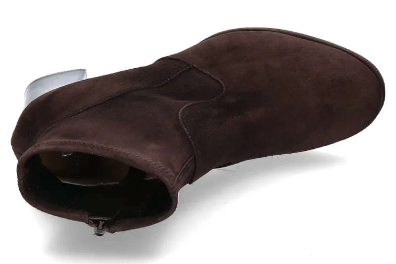 Die Truman’s Plateaustiefelette in dunkelbraunem Veloursleder ist ein Statement-Stück für Damen, die auf der Suche nach Stil und Höhe sind. Mit einem beeindruckenden 75 mm hohen Blockabsatz und einem 20 mm dicken Plateau verleihen diese Stiefel Ihnen eine erhabene Haltung und betonen Ihre Eleganz. Der Schaft aus Stretchvelours bietet eine flexible Passform und verleiht gleichzeitig einen schlanken Look. Die Ledersohle mit Gummiüberzug sorgt für ausgezeichnete Traktion und Langlebigkeit, während das Lederinnenfutter und die Lederinnensohle ein luxuriöses Trageerlebnis schaffen. Diese Plateaustiefeletten sind die perfekte Wahl, um Ihrem Look das gewisse Extra zu verleihen. Ob für besondere Anlässe oder einen selbstbewussten Auftritt im Alltag, diese Stiefel vereinen Stil und Komfort in einem. Truman’s steht für Qualität und Stil, und dieses Modell ist keine Ausnahme. Es wird Sie begeistern und Ihr Outfit auf ein neues Level heben.
