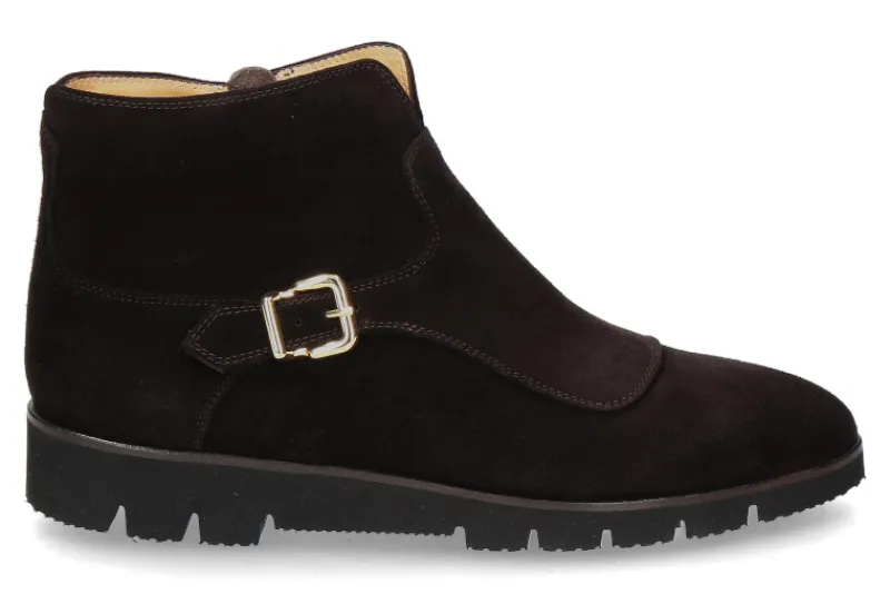 Die dunkelbraune Stiefelette aus hochwertigem Veloursleder von Truman’s ist der perfekte Begleiter in den Herbst- und Wintermonaten. Gekonnt rundet sie jedes Outfit ab. Hergestellt werden die Schuhe von Truman’s in Italien.