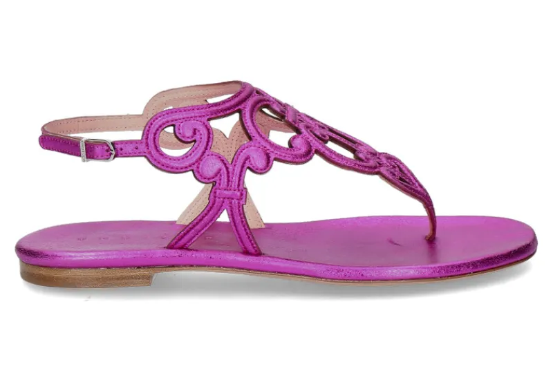 Die elegante Zehentrenner-Sandale von Unützer in metallic pink ist der ideale Sommerschuh. Luftig leicht und elegant ist dieses Modell zugleich. Die tolle Verarbeitung der geschwungenen, filigranen Riemchen macht den Schuh aus Nappaleder einzigartig schön und bequem. Die kleine Schließe lässt das Fersenriemchen individuell in der Länge regulieren. Die angenehme Polsterung aus Leder sorgt für zusätzlichen Komfort. Hergestellt werden Unützer Schuhe in Italien.