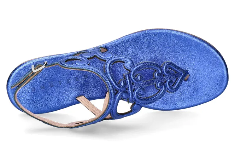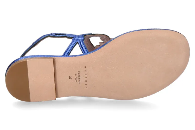 Die elegante Sandale von Unützer in metallic blau ist der ideale Begleiter im Sommer. Die tolle Verarbeitung der edlen und filigranen Riemchen machen den Schuh aus Nappaleder einzigartig schön und bequem. Die kleine Schließe lässt das Fersenriemchen individuell in der Länge regulieren. Die angenehme Polsterung aus Leder sorgt für zusätzlichen Komfort. Hergestellt werden Unützer Schuhe in Italien.