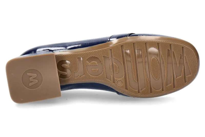 Die Gummisohle sorgt für eine solide Bodenhaftung und ermöglicht bequemes Gehen. Der Blockabsatz verleiht den Schuhen Stabilität und einen modernen Touch. Die Wonders Trotteur in dunkelblauem Lackleder vereinen somit Stil, Komfort und Qualität und eignen sich ideal für verschiedene Anlässe, bei denen ein eleganter Auftritt gefragt ist.