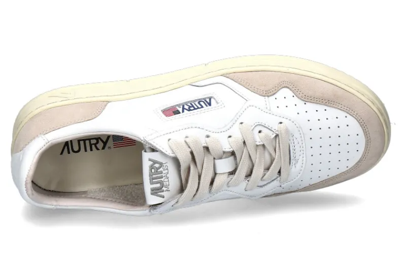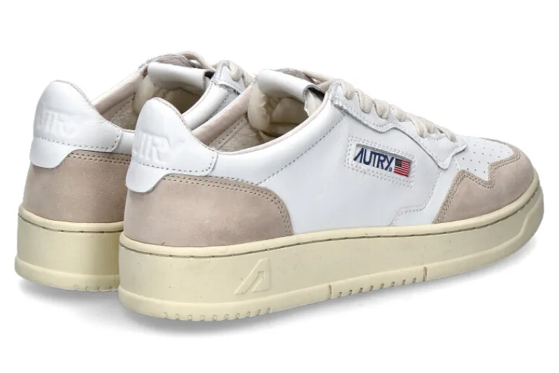 Der sportive Sneaker von Autry in weiss-beige überzeugt durch die sehr gute Verarbeitung. Dank der weichen Leder und Frotteefütterung ist das Model sehr bequem. Die Decksohle ist bei diesem Modell wechselbar. Abgerundet wird der zeitlose Look durch die beige Gummisohle.
