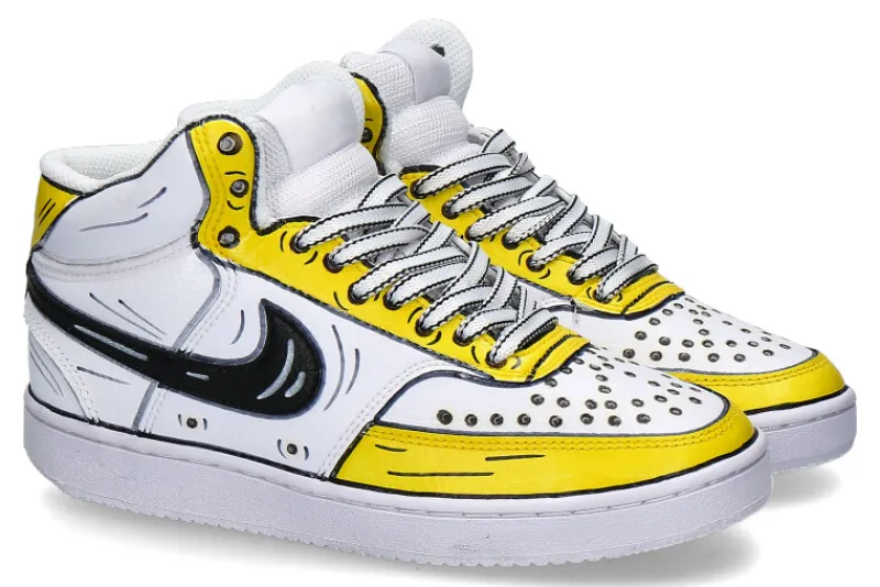Herren Ballo Da Sola Nike by BallodaSola Sneaker MID CUSTOMIZED CARTOON YELLOW