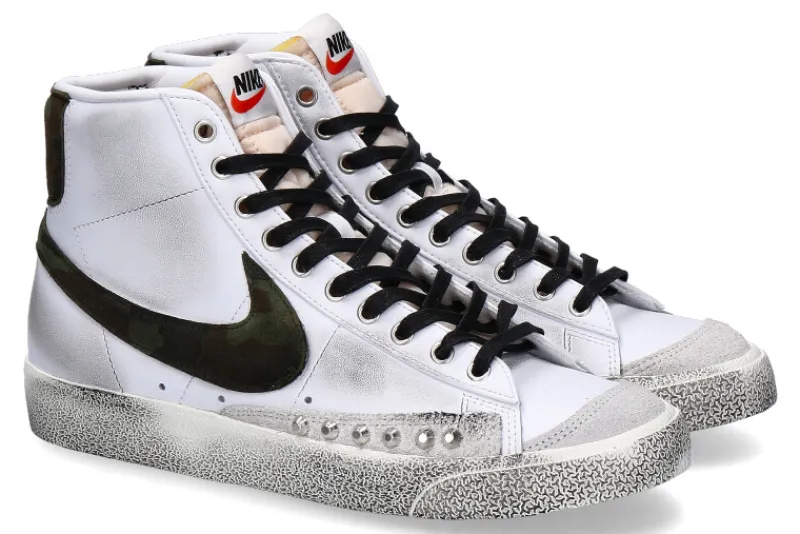 Der Mid-waist Sneaker von NIKE überzeugt mit einem tollen Design. Das Nike-Emblem und die Fersenkappe kommen im dezenten Camouflage daher. Seitlich und hinten zieren den Sneaker Nieten. Der Schuh im angesagten Vintage-Look kann vielseitig kombiniert werden. Die Schuhe werden per Hand in Italien veredelt und designt.