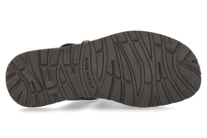 Die stylische Lederpantolette in grün mit orange von der Firma Emozioni lässt sich zu vielen Sommerlooks kombinieren. Ausgestattet ist das Modell mit einer Lederinnensohle. Die Laufsohle wurde aus Gummi gefertigt. Hergestellt wurde das exklusive Modell von Emozioni in Italien.