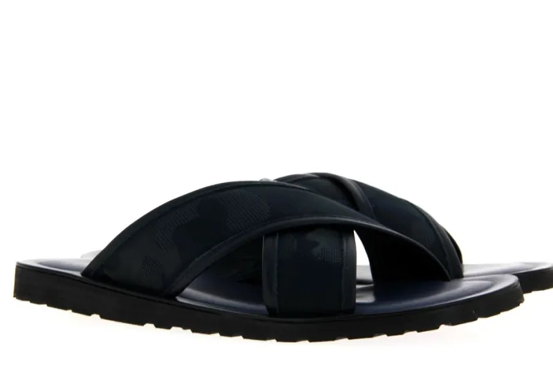 Die dunkelblaue Pantolette Emozioni überzeugt mit Camouflage Muster! Für den perfekten Tragekomfort an heißen Tagen sorgt die gepolsterte Decksohle aus Leder. Die Laufsohle hingegen wurde aus Gummi gefertigt um beste Stabilität auf dem Asphalt zu gewähren. MADE IN ITALY!