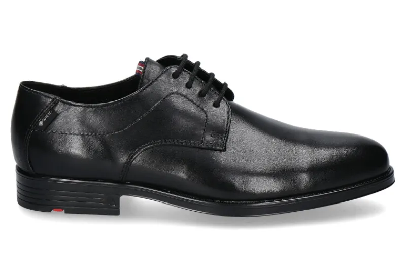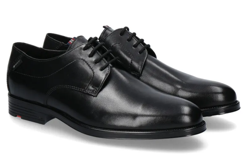 Der Herren-Schnürschuh von Lloyd verkörpert zeitlose Eleganz und Funktionalität. Gefertigt aus schwarzem Nappaleder präsentiert er sich in edlem Design. Die Integration einer Gore-Tex Membran sorgt für wasserdichte und atmungsaktive Eigenschaften, was den Schuh sowohl im Geschäftsalltag als auch bei widrigen Wetterbedingungen zum idealen Begleiter macht. Die griffige Gummisohle gewährleistet Trittsicherheit und Komfort. Dieser Business-Schuh vereint höchste Qualität mit stilvollem Auftreten und bietet damit die perfekte Symbiose aus Ästhetik und Funktionalität. Ein Must-have für den modernen Mann, der Wert auf stilvolles Auftreten und Komfort legt.
