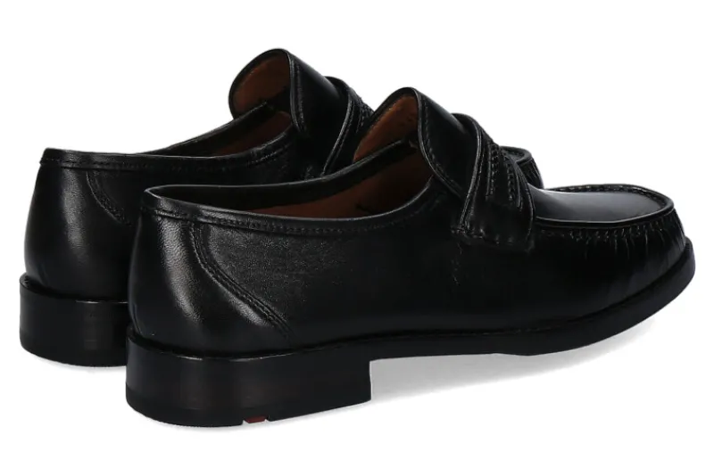 Der Lloyd Slipper in schwarz aus Leder überzeugt durch sein klassisches Design. Dieser Schuh verfügt über eine EXTRA WEITE sowie einem hochgezogenen Vorderblatt mit eingearbeiteteem Gummizug dies bietet komfortablen Tragefomfort und sorgt für perfekten Sitz am Fuss. Gefertigt wurde der Lloyd Slipper KENDO in Deutschland.
