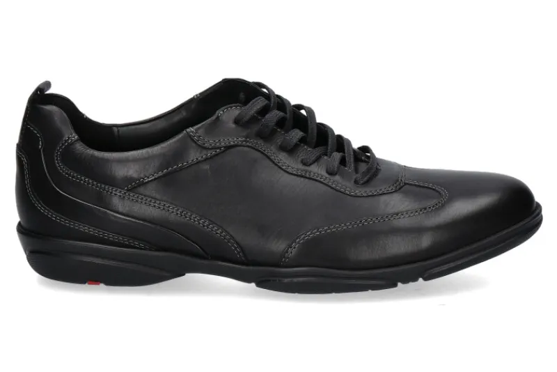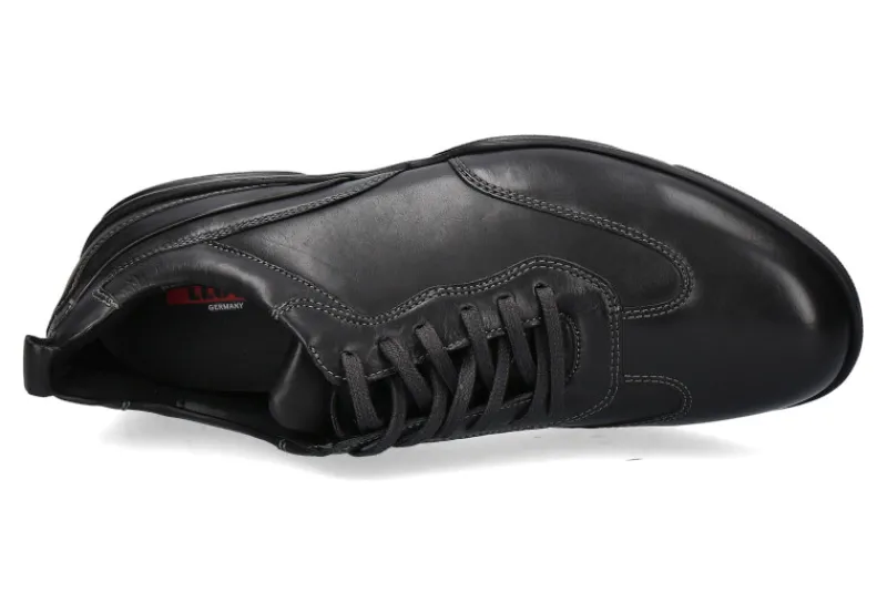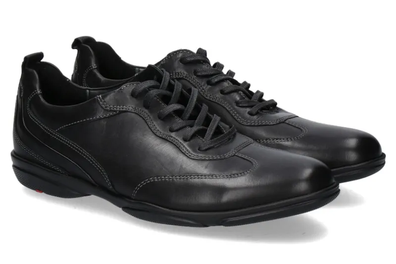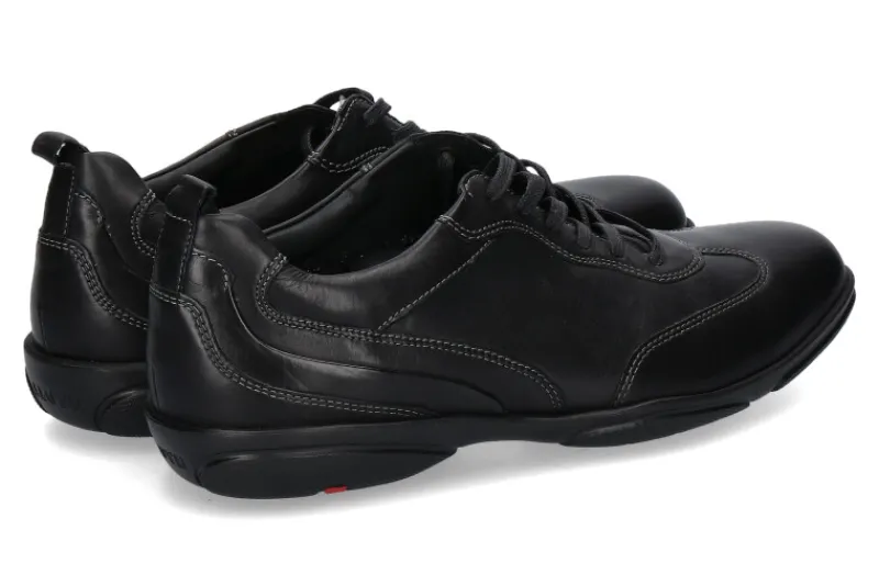 Der Lloyd Sneaker in schwarz begeistert durch eine hochwertige Verarbeitung und Passform. Ausgestattet ist das Modell mit einer Lederfütterung sowie einer herausnehmbaren Einlegesohle. Die Gummilaufsohle ist extra leicht und bietet somit mehr Komfort. Hergestellt wurde das Modell BERN von Llyod sehr gut in Deutschland.