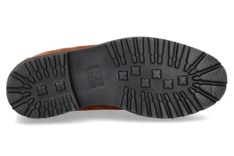Die Ludwig Reiter Schnürstiefelette TOURING aus weichem Veloursleder in Cognac ist ein toller Herbst- und Winterbegleiter. Das weiche Innenfutter aus Lammfell bietet trockene und warme Füße zugleich. Die Laufsohle aus Gummi verfügt über Noppen, die einen sicheren Stand gewähren. Hergestellt werden Ludwig Reiter Schuhe in Österreich.