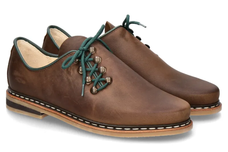 Der Meindl Herren-Trachtenschuh Anschoering ist ein hochwertiger Lederschuh, der traditionelles Design und modernes Schuhhandwerk vereint. Gefertigt aus edlem Boxcalf Leder in einem klassischen Braunton, ist dieser Schuh nicht nur optisch ansprechend, sondern auch langlebig. Das Innenfutter aus Leder sorgt für ein angenehmes Tragegefühl und gute Atmungsaktivität, ideal für lange Tragezeiten bei Festen oder im Alltag. Die helle Gummisohle bietet hervorragenden Halt auf verschiedenen Untergründen und sorgt für zusätzlichen Tragekomfort. Mit seiner rustikalen Optik passt der Schuh perfekt zu Trachtenoutfits wie Lederhosen oder traditionellen Anzügen, kann aber auch im Freizeitbereich stilvoll kombiniert werden. Der Meindl Anschoering steht für Qualität, Tradition und zeitlosen Stil – ein Must-have für Trachtenliebhaber.