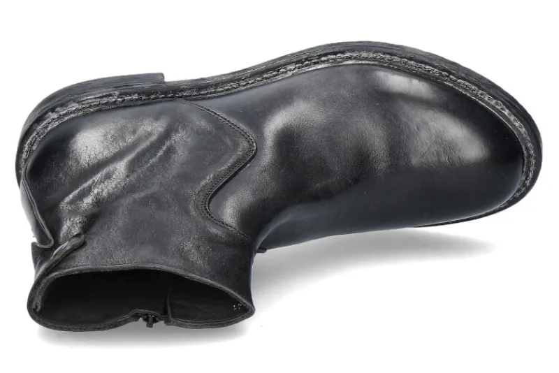 Die Moma Herren-Stiefelette MINSK CUSNA in Nero/Schwarz kombiniert zeitloses Design mit hochwertiger Handwerkskunst. Der seitliche Reißverschluss sorgt für einfaches An- und Ausziehen, während das edle Lederobermaterial und die Lederfütterung innen für hohen Tragekomfort und Atmungsaktivität sorgen. Die robuste Gummisohle bietet ausgezeichnete Griffigkeit und Haltbarkeit, wodurch die Stiefelette auch für längeres Tragen geeignet ist. Diese elegante und zugleich funktionale Stiefelette passt perfekt zu smarten und lässigen Outfits und eignet sich sowohl für den Alltag als auch für besondere Anlässe. Die Kombination aus Leder und Gummi macht sie stilvoll, bequem und langlebig.